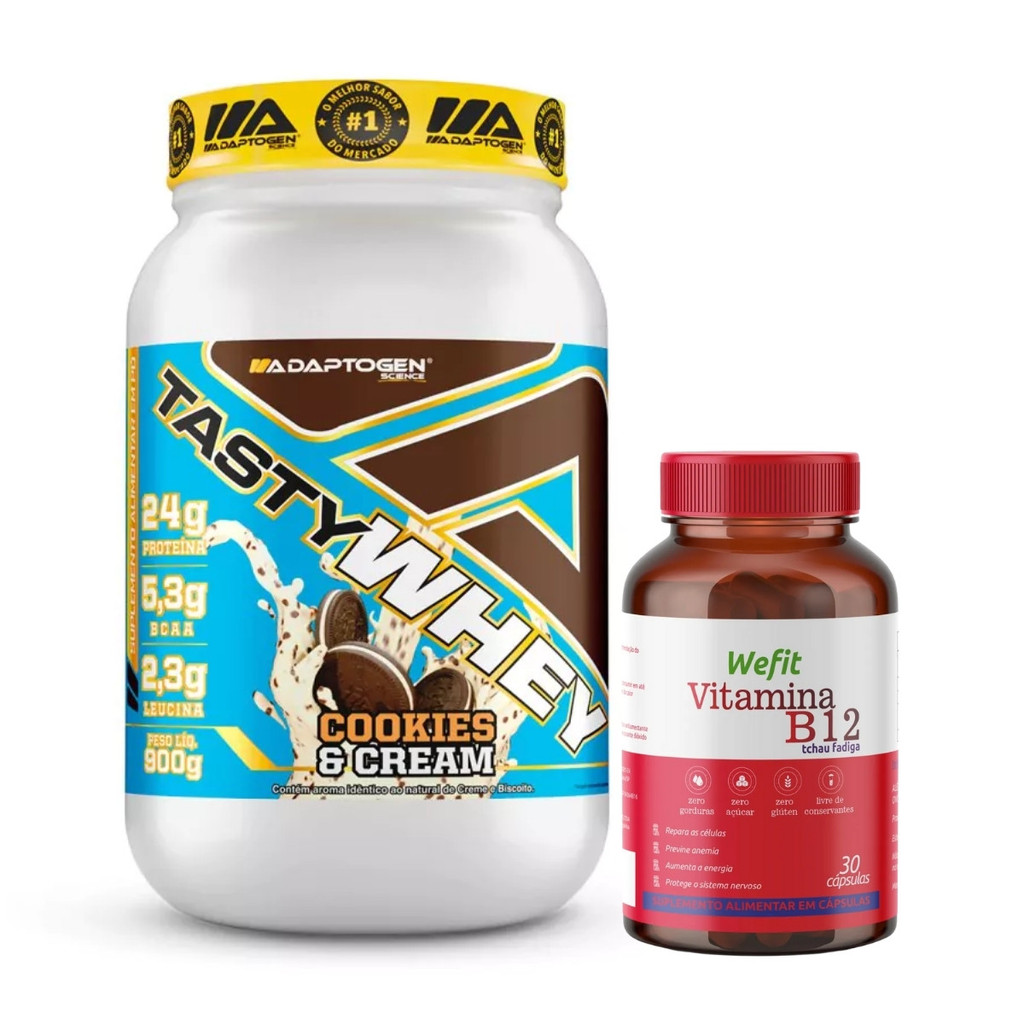 Tasty Whey 900g Adaptogen + Vitamina B12 C/30 Cápsulas WeFit