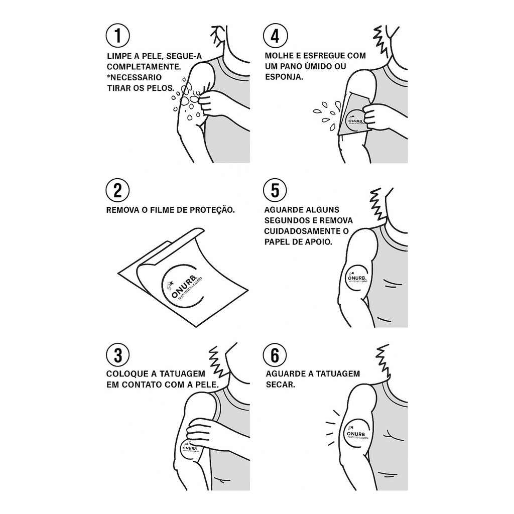TATUAGEM TEMPORÁRIA REALISTA Tamanho: 20x12cm Duração: Média de 4 a 7 dias (depende da região e contato com água/suor) Fácil aplicação, remoção e antialérgica SEGURANÇA PARA TODOS • Produto atóxico, testado e certificado internacionalmente • Não testado em animais • Dermatologicamente testado em hipoalergênicos INSTRUÇÕES PARA APLICAR A SUA TATUAGEM: 1 - Peça ajuda para aplicar em áreas de difícil alcance. 2 - Depile ou raspe os pelos da área de aplicação. 3 - Lave e seque bem a pele. 4 - Remova a película plástica da tatuagem. 5 - Posicione a tatuagem na pele. 6 - Pressione um pano úmido sobre toda a tatuagem por 30 segundos. 7 - Retire o pano e o papel, evitando tocar na tatuagem por 5 minutos. PROLONGUE A DURAÇÃO DA SUA TATTOO 1 - Evite usar protetor solar, cremes e produtos à base de óleo sobre a tatuagem. 2 - Não esfregue a área durante o banho. 3 - Evite aplicar a tatuagem em locais sensíveis, como rosto, olhos ou em áreas com alergias. 4 - Seguindo todas as essas dias sua tattoo pode durar até 14 dias. Tags: Tatuagem Temporária Masculina Tatuagem Falsa, Tatuagem Kit, Tatuagem Cartela, Tatuagem Removível, Tatuagem Tattoo, Tatuagem Fake Garantia do vendedor: 90 dias