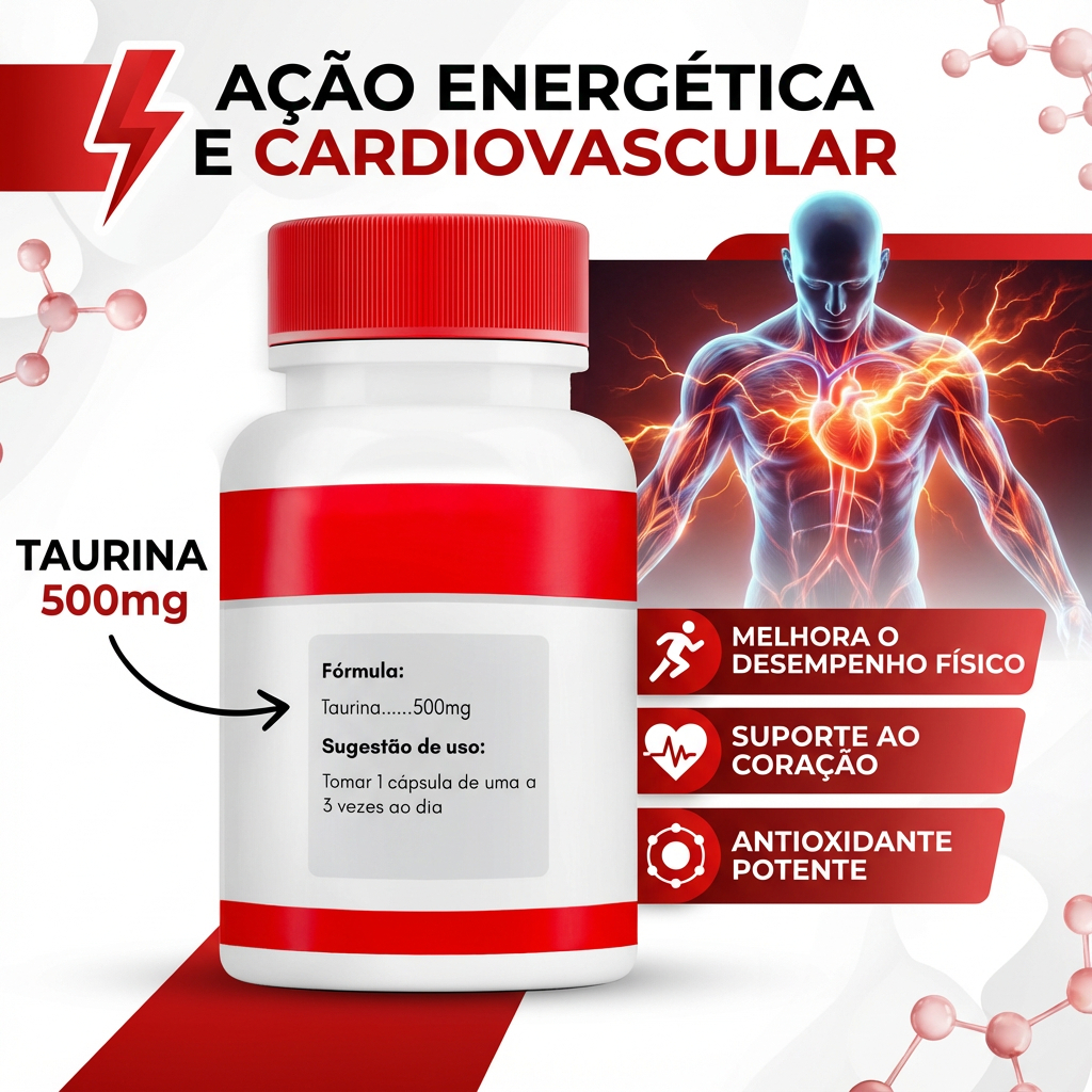 Taurina Pura 500mg (60 Cápsulas) AMINOÁCIDO SUPLEMENTAR | PRONTA ENTREGA A Taurina é um aminoácido naturalmente encontrado no corpo, sendo um dos constituintes mais abundantes no músculo, cérebro e coração. É utilizada como um suplemento alimentar para complementar a ingestão dietética e apoiar as necessidades nutricionais do organismo. CARACTERÍSTICAS DO PRODUTO: Ingrediente: 100% Taurina. Fórmula: Alta concentração de 500mg por cápsula. Apresentação: Pote com 60 Cápsulas (Duração aproximada de 60 dias). Uso: Complemento para dietas de atletas e indivíduos ativos. Qualidade: Produto encapsulado, prático e fácil de ingerir. COMPOSIÇÃO POR PORÇÃO (1 Cápsula): Taurina: 500mg Excipiente q.s.p: 1 cápsula VALIDADE: 12 meses Aviso de Conformidade (Máxima Segurança): ESTE PRODUTO NÃO É UM MEDICAMENTO. Produto dispensado de registro conforme RDC Nº 240/2018 (ou outra legislação específica para suplementos/alimentos). VALIDADE: 12 meses. Responsável Técnico: Farmacêutico Marcos Nova – CRF 36533.