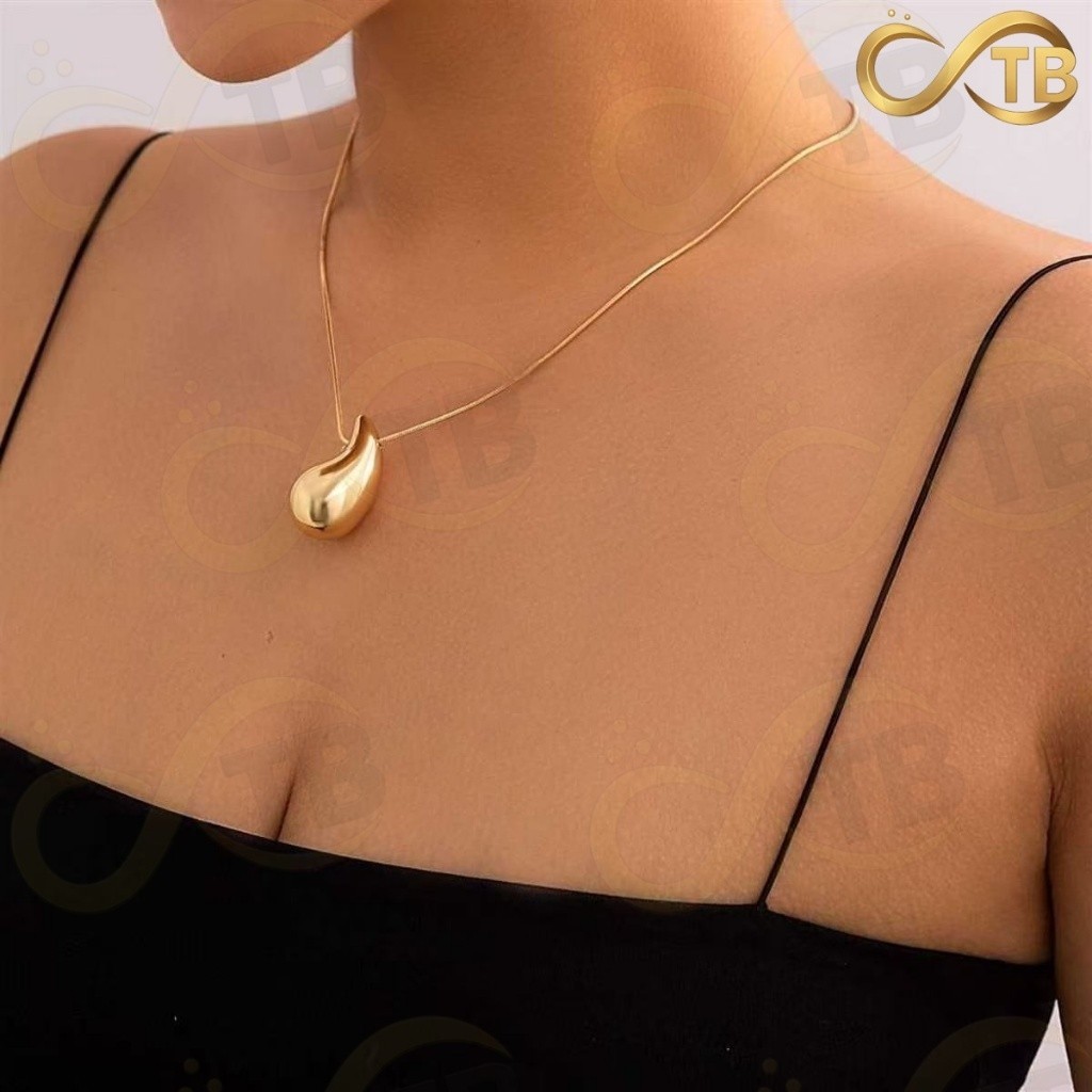 TB Colar Conjunto Colar Anel Brincos de Metal Exagerada em Ouro e Prata com Design Gota Água