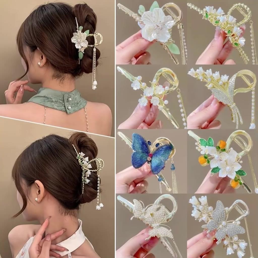 TB Presentes Moda Presilha De Cabelo Feminina Dourada Com Borla De Borboleta