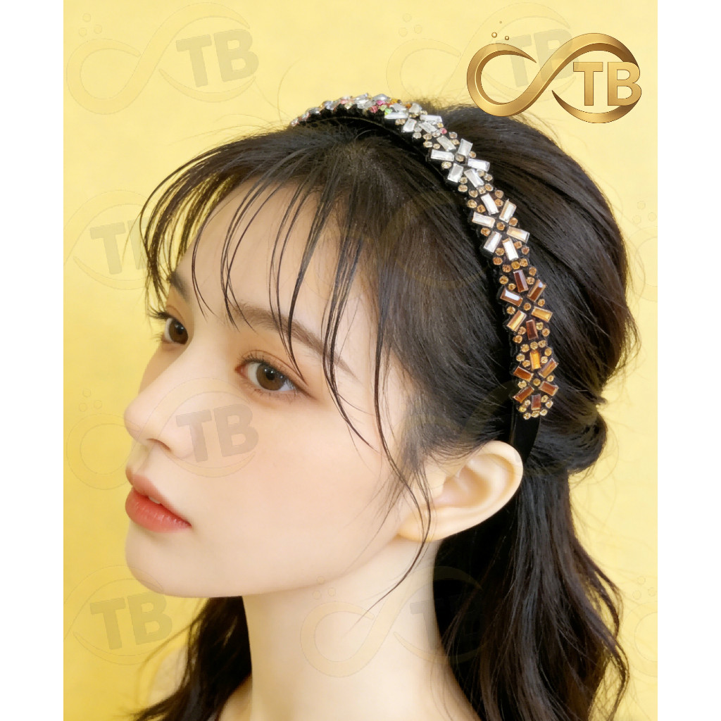TB Tiara Feminina com Pedras Brilhantes | Arco de Cabelo Luxo | Acessórios de Cabelo Moda