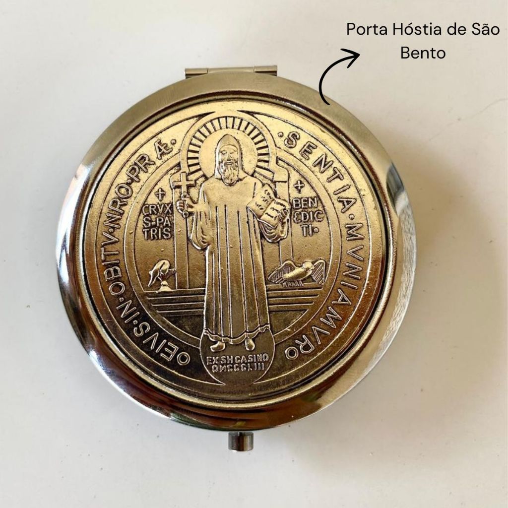 Teca Porta Hóstia Grande De São Bento Em Aço Inoxidável Para Ministros Com Acabamento Premium