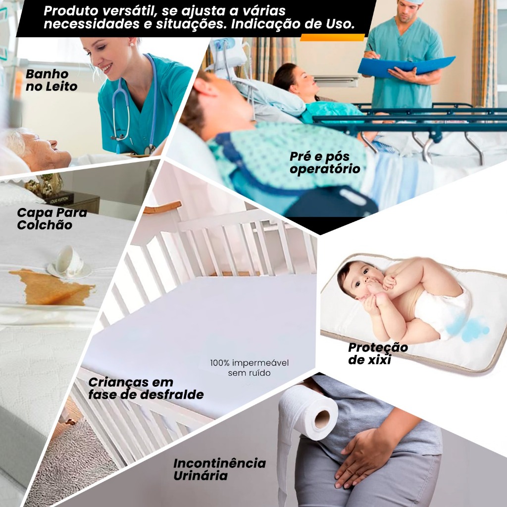 TRAVESSA PARA COLCHÃO SOLTEIRO OU CAMA HOSPITALAR A travessa 2 em 1 combina funcionalidade e conforto, atuando como protetor de colchão e travessa para movimentação de pacientes. CARACTERÍSTICAS DO PRODUTO: DIMENSÕES: 1 x 1,40 m, ideal para colchões de solteiro, camas hospitalares e berços. MATERIAL: resistente e impermeável, garantindo proteção contra líquidos, sujeiras e incontinência urinária. Tecido Dupla Face: proporciona maior durabilidade e versatilidade. USO VERSÁTIL: Perfeito para diversas situações, incluindo: - Desfralde de crianças. - Cuidados com pacientes idosos. - Pré e pós-operatório. - Proteção de colchões contra incontinência urinária. - Auxílio na movimentação de pacientes com conforto e segurança. PRINCIPAIS VANTAGENS: Praticidade: lavável à máquina, facilitando a higienização. Proteção à Saúde: tecido antialérgico e antiácaro. Conforto: tecido silencioso e sem PVC, oferecendo noites tranquilas e livres de incômodos. Controle Térmico Inteligente: mantém a temperatura ideal, sem aquecer em dias quentes ou esfriar em dias frios. Por que Escolher a Travessa Meio Corpo? Atende às necessidades de diferentes públicos, desde crianças em desfralde até pacientes acamados, oferecendo proteção, segurança e praticidade. Invista em conforto e proteção com a Travessa Meio Corpo. Uma solução inteligente e confiável para cuidados diários!