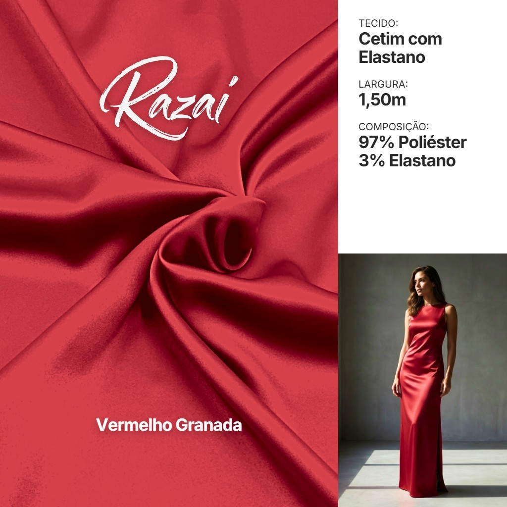 Tecido Cetim com Elastano RAZAI Premium | 97% Poliéster e 3% Elastano | Brilho e Conforto