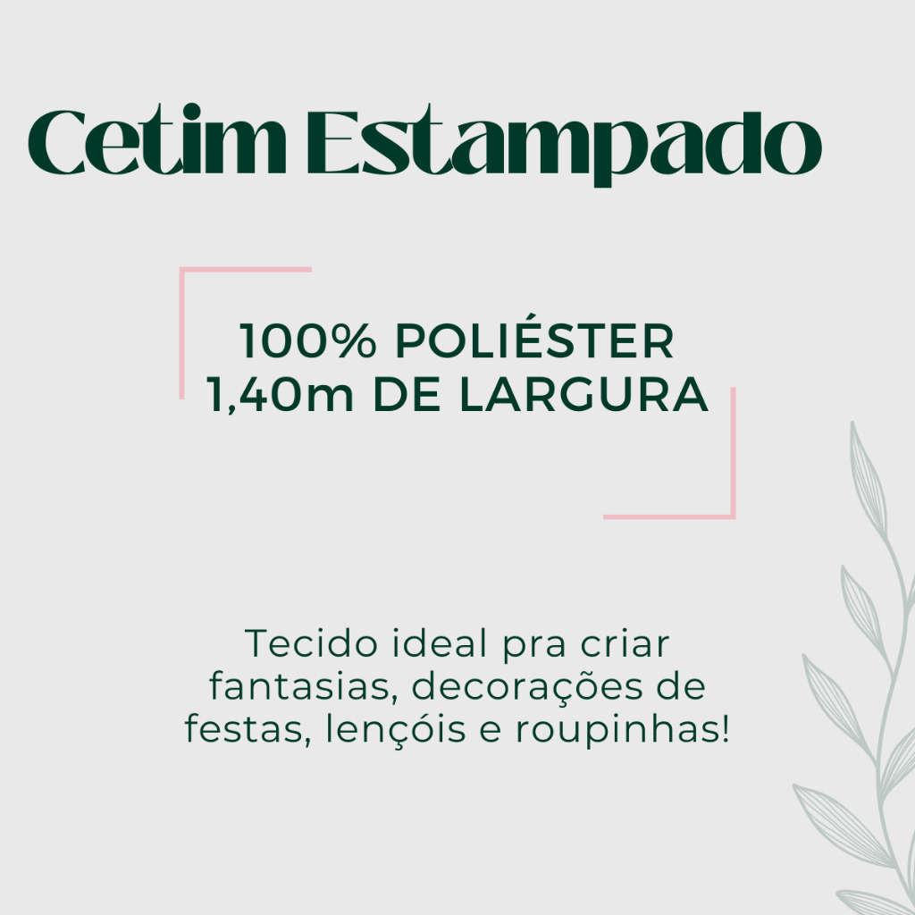 TESS DECOR - NOVIDADE, TECIDOS COM QUALIDADE PREMIUM NO MERCADO! Conheça sua nova loja de tecidos, com novidades toda semana e sempre a sua disposição para esclarecer quaisquer dúvidas! Somos uma equipe especializada no mundo têxtil e pronta para melhor te atender sempre! Nossa maior missão por aqui, é te levar solução em forma de tecidos, seja para suas criações ou para decorar sua casa! Esperamos que gostem de nós :) ____________________________________________________________________________________________________________________ Tecido Cetim com estampa de bolinhas, ideal e perfeito para confecção de saias de toalhas de mesa para decorar festas, fantasias, lençóis e fronhas, toucas de cetim e scrunchies! MEDIDAS DO TECIDO: Altura: 1,00m ou 0,50cm (1 metro ou meio metro) Largura: 1,40m (FIXA) Cor: Preto bolinha branco PRODUTO A PRONTA ENTREGA ENVIAMOS PARA TODO O BRASIL DENTRO DE 1 DIA ÚTIL APÓS A CONFIRMAÇÃO DO PAGAMENTO FOTOS REAIS DO TECIDO TECIDOS PREMIUM NO MERCADO VANTAGENS DO CETIM ESTAMPADO: - Toque macio; - Acetinado e brilhoso; - Versátil, você pode criar muitos itens com ele; - Possui estampas únicas! _____________________________________________________________________________________________________ LEIA ISTO ANTES DE COMPRAR! 1- A largura do tecido é fixa, então o que muda conforme a quantidade que você deseja, é a altura do tecido! 2- Selecionando duas unidades de 1 metro você compra = 1,40m de largura x 2,00m de altura, e assim por diante. Selecionando duas unidades de MEIO METRO = 1,40m de largura x 1,00m de altura. 3- Enviamos os tecidos em um único corte, não em pedaços!! 4- Se você deseja comprar por exemplo, 3,5m do tecido: você precisa selecionar 3 unidades de 1 metro + uma unidades de meio metro! 5- O cetim é com elastano? R: Não! 6-Possui acabamentos de costura nas bordas? R: Não! A Equipe Tess Decor está à sua disposição no chat, boas compras!