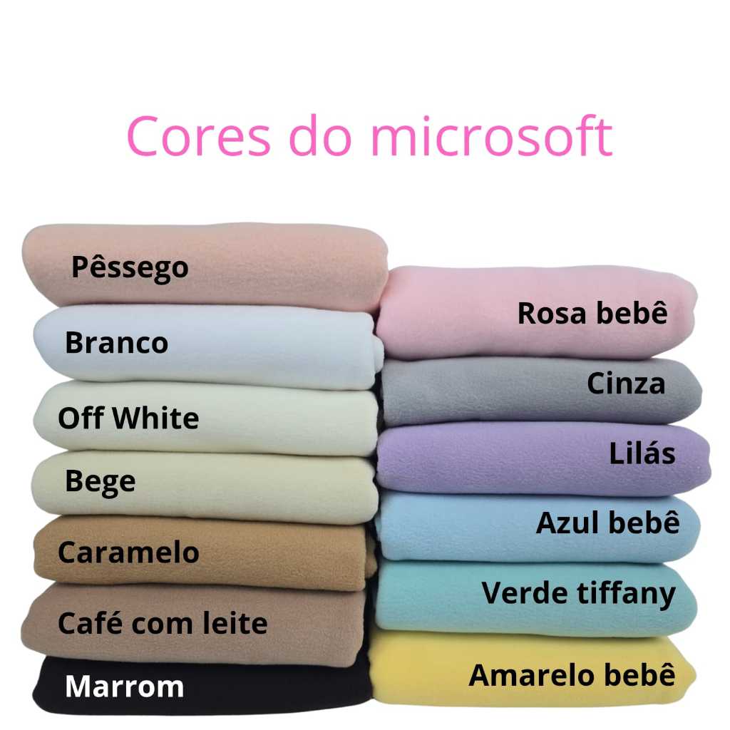 VARIAÇÕES: MEIO METRO= 50cm x 1,65m de Tecido 1METRO= 1 metro x 1,65m de tecido → A cor do tecido pode variar conforme a configuração da tela do seu monitor ou smartphone. Microsoft Tecido Microfibra de Alta Performance Macio, Absorvente e Hipoalérgico Composição: 100% Poliéster - Gramatura: 180g/m² FAÇA COM O TECIDO MICROSOFT: - Naninhas e Mantas, Edredons - Pantufas, Meias, Touca, Gorros e Cachecol - Roupas para Bebê, Casacos, Blusas de Frio - Pijamas, Macacão, seja infantil ou adulto - Saídas de Maternidade e Roupão ou Robe - Bichos, Bonecas e Mascotes para decorar quartos infantis - Faça Absorventes Ecológicos Infantis e/ou Adultos SOBRE O TECIDO MICROSOFT: O Tecido Microsoft é hipoalérgico e antipilling, oferecendo conforto e mantendo a temperatura ideal devido à sua microfibra de alto desempenho e respirabilidade. Ele não desfia ao cortar e é igual dos dois lados, proporcionando a sensação de uma mantinha (cobertor) macia e confortável. DIFERENÇA ENTRE SOFT, PLUSH E MICROSOFT: - Microsoft: Ambos os lados são iguais, lembra uma mantinha e não desfia nem enrola ao cortar. - Plush: Aveludado por fora e liso por dentro, mais fresquinho ao toque e um pouco elástico. Para a confecção de mantas, recomendamos o uso de forro, mas no Microsoft isso não é necessário. - Soft: O dobro da espessura do Microsoft, sem tratamento antipilling, mas ambos são hipoalérgicos e com base de microfibra de alta performance. FICOU COM DÚVIDAS? Envie uma mensagem! Estamos à disposição para ajudar.