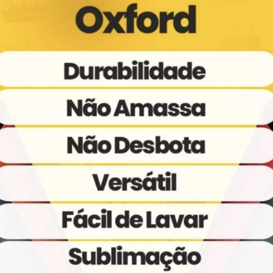 Oxford 100 % POLIESTER (venda a partir de 50 cm x 1,50 mt largura) *OBS LARGURA NÃO AUMENTA* O Oxford é um tecido decorativo e para vestuário, sendo mais procurado para confecção de toalhas de mesa, guardanapos, cortinas, bandô de cortina, caminhos de mesa e até itens como bolsas, sacos de brinquedos, painéis de fotografia, papéis de parede e o que mais sua criatividade permitir! Possui diversas cores e até estampas com barrado próprias para toalhas de mesa e cortinas. Ficha técnica Fibra: 100% poliéster Gramatura: 148g/m² Largura: 1,50m Lavagem: Água na temperatura máx. de 30° Ferro: Passar na temperatura máx. de 150° Recomendações • Não lavar à seco; • Secar ao ar livre; • Não usar clareadores nem alvejantes; Aplicações: • Toalhas de mesa; • Guardanapos; • Cortinas; • Vestuário; • Caminhos de mesa; • Painel de foto; • Papel de parede; • Capas para sofá; Informações adicionais • Não solta tinta. Recomenda-se lavar separado de outras peças; • É necessário fazer barra, pois o Oxford costuma desfiar. Atenção: Pode haver pequena diferença de tonalidade do produto original de acordo com a tela do seu smartphone ou computador.