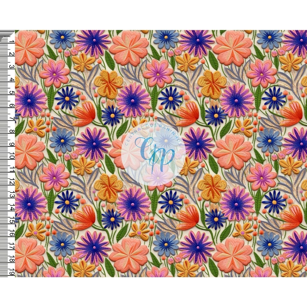 Tecido OXFORD estampado digital - Floral - Bordado - 3D