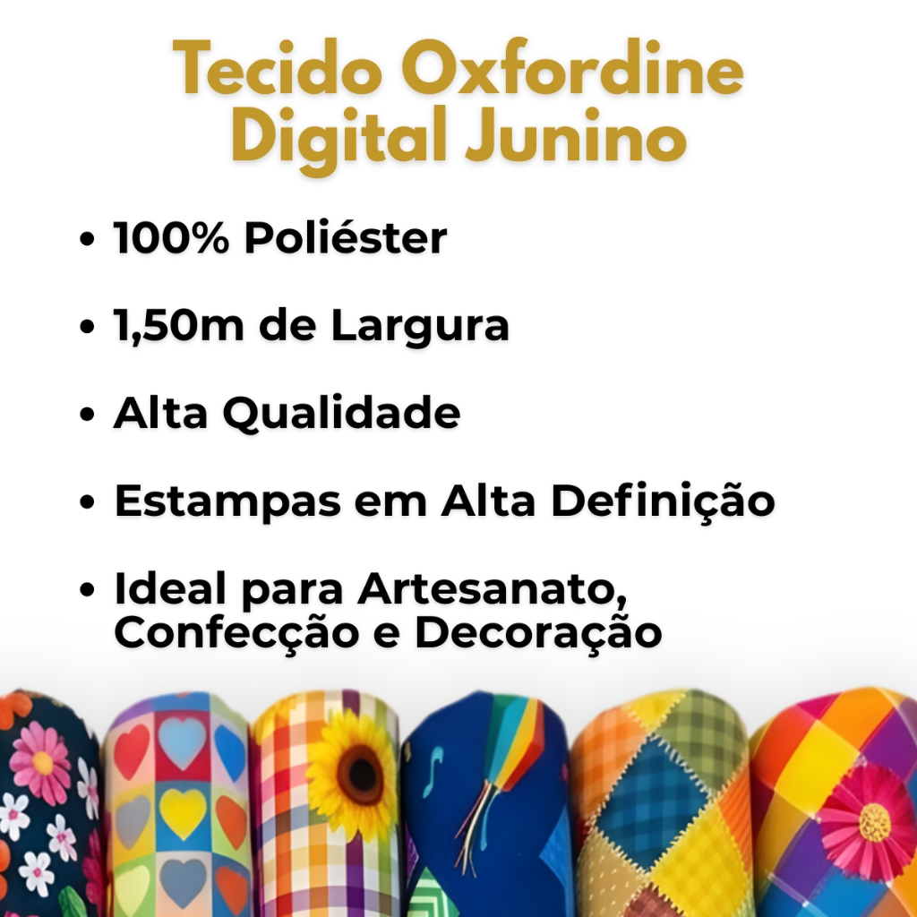Tecido Oxfordine Digital Junino 1,50mt Estampado Festa Junina Florido Xadrez Alta Qualidade