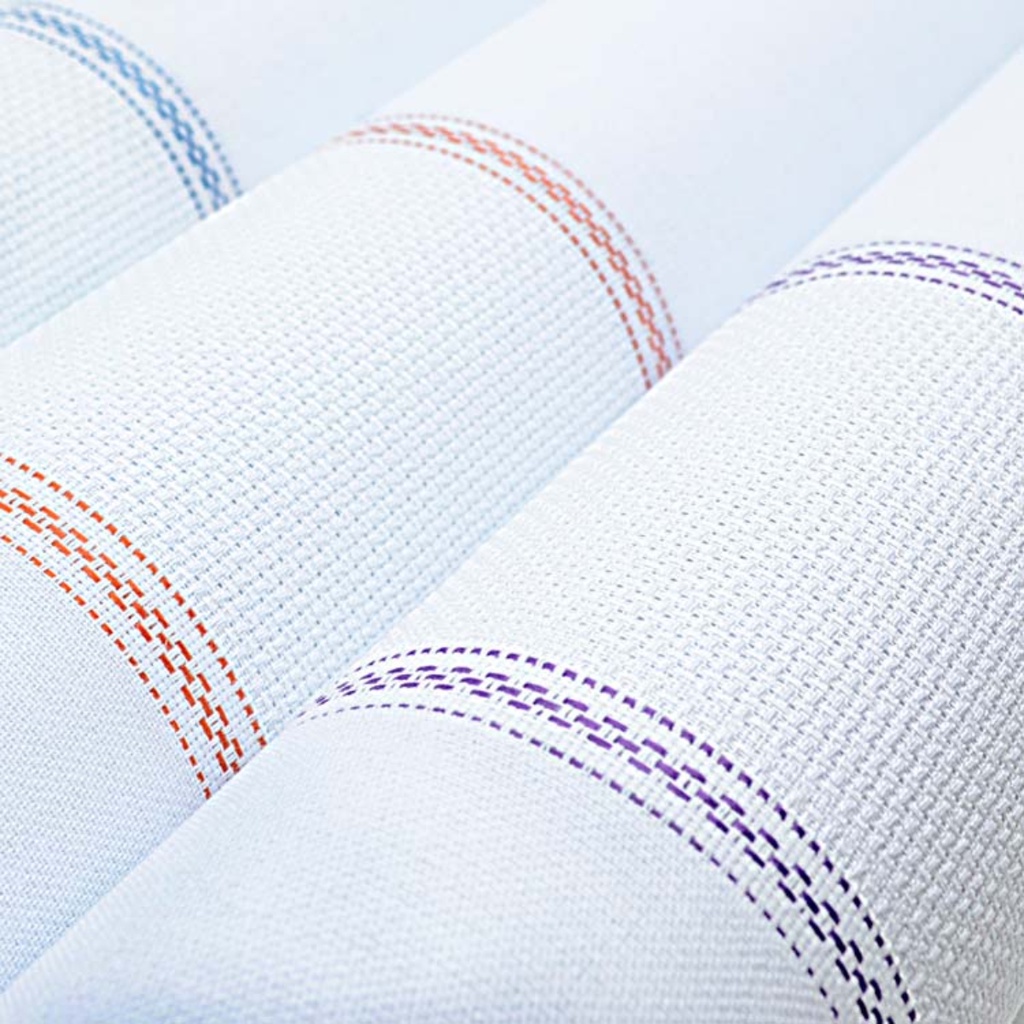 ACESSE O CATÁLOGO. Para visualização do catálogo em dispositivo móvel (Smartphone). Clique na foto principal do anúncio e arraste a imagem para o lado. TECIDO PANO DE COPA FRISO DESCRIÇÃO O Pano de Copa com Friso Destaque conta com uma faixa para pintar e uma para bordar, separadas por um friso. O tecido é confeccionado no exclusivo branco óptico e seus diferenciais são os frisos coloridos nas extremidades da faixa de Etamine e também com friso na outra extremidade do tecido. DADOS TÉCNICOS Composição: 98% Algodão e 2% Poliéster Largura: 0,70 m Gramatura: 243 g/m ² – 170 g/m linear Faixa: 11cm de altura
