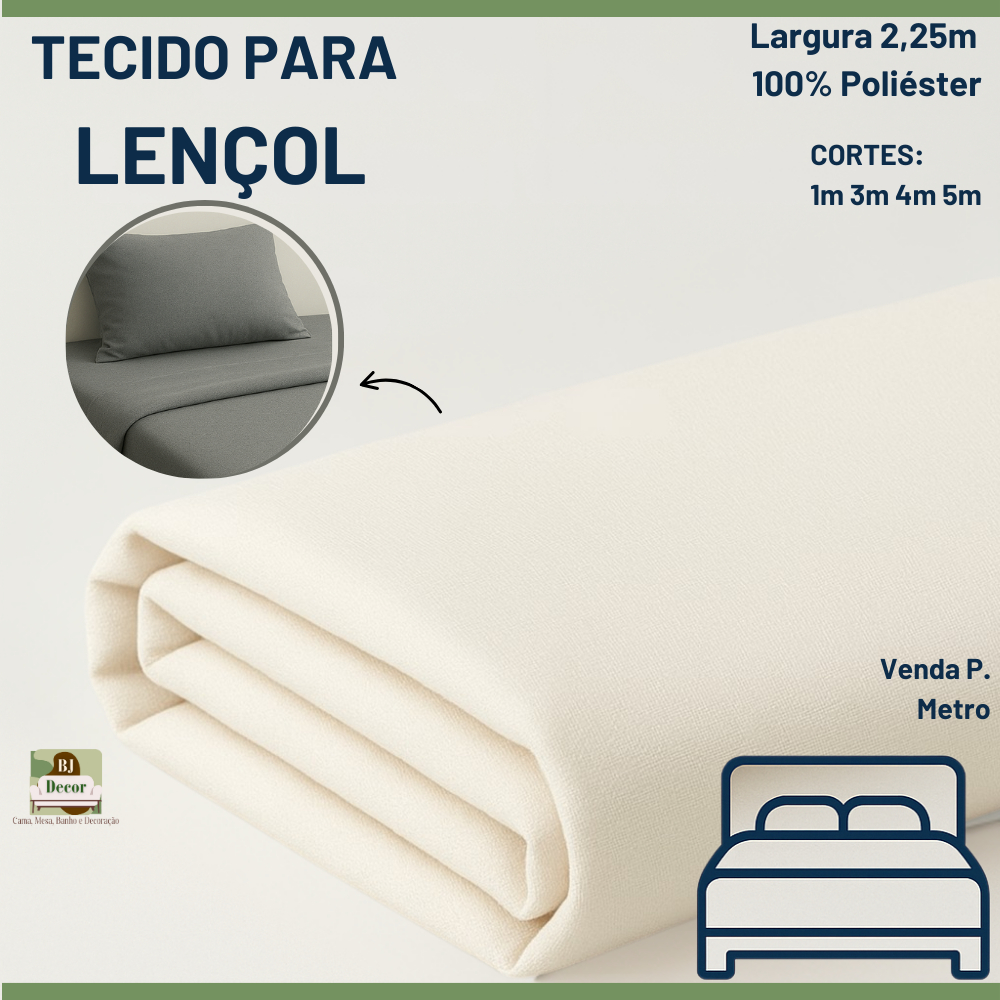 Tecido para Lençol 100% Poliéster – Largura 2,25m Ideal Para Enxoval e Decoração