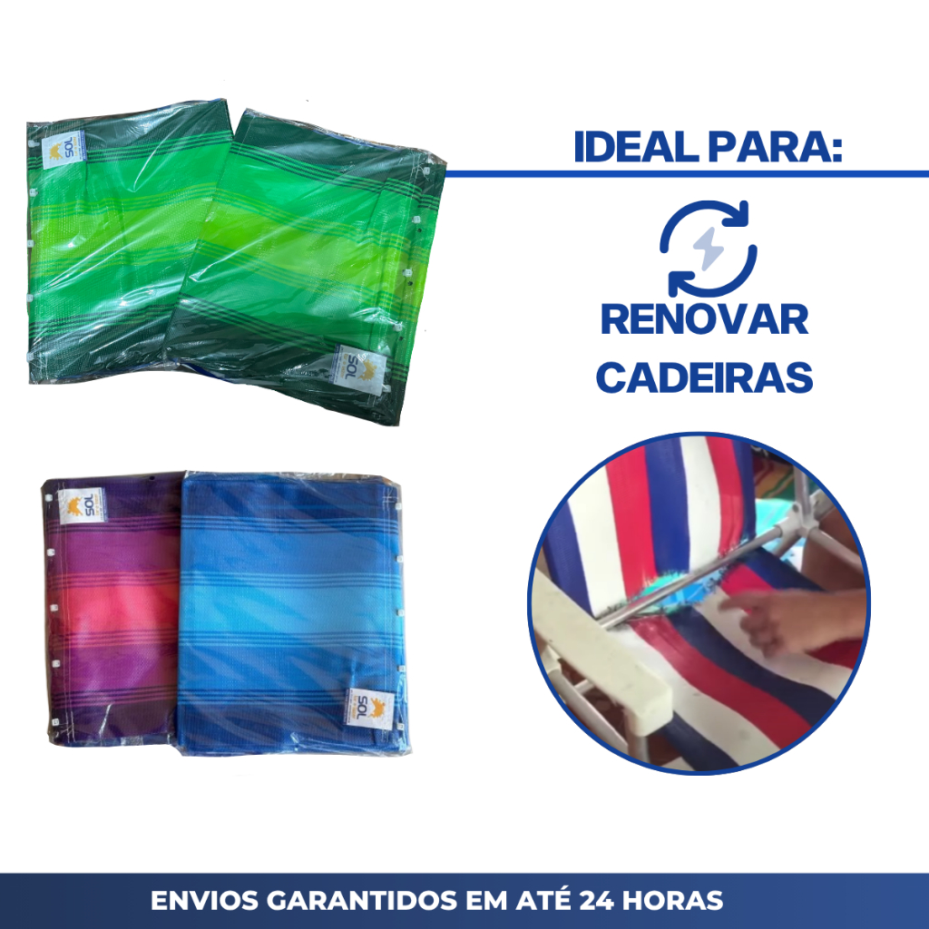 Tecido Reposição para Cadeira de Praia Refil Tecido Escolha a Cor Kit 6 unidades