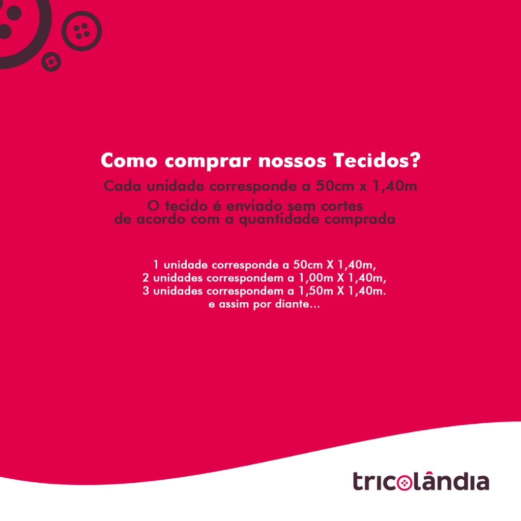 ✨ Celebre a Páscoa com Criatividade! ✨ 🧵 Tecido Tricoline 100% Algodão - Estampas Exclusivas de Páscoa! 🧵 ✅ Ideal para: Artesanato, Patchwork, Decoração, Costura Criativa e muito mais! 📏 Detalhes: Composição: 100% Algodão (Macio e Confortável) Largura: 1,50m Comprimento: Cada unidade = 50cm Estampa: [Descreva a estampa, ex: Coelhinhos, Ovos Coloridos, Flores] ✂️ Como Comprar: 1 unidade = 50cm x 1,50m 2 unidades = 1 metro x 1,50m 3 unidades = 1,50 metros x 1,50m E assim por diante... 💡 Use sua Imaginação: Decoração: Almofadas, jogos americanos, toalhas de mesa. Artesanato: Patchwork, bonecas de pano, lembrancinhas. Costura: Roupas infantis, acessórios. 🧺 Cuidados: Lavar à máquina com cores similares. Secar à sombra. Passar com ferro em temperatura baixa. 🎁 Tricolândia - Loja de tecidos e artesanato 🎁 🚚 Envio Rápido e Seguro para Todo o Brasil! 🚚 #tricoline #tecidodepascoa #tricolinepascoa #tecidoalgodao #patchwork #artesanato #costuracriativa #decoracaopascoa #tecidosestampados #shopee #shopeebrasil #tricolandia