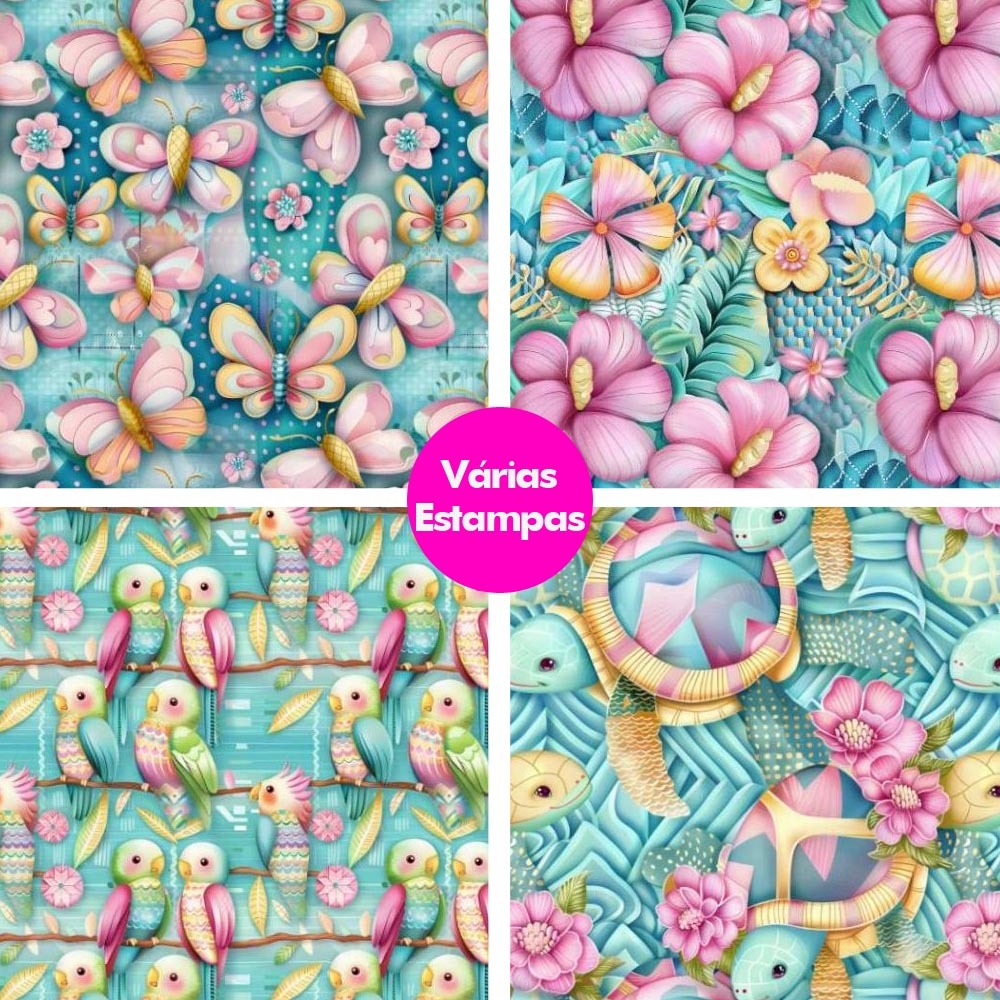 Tecido Tricoline Digital 100% Algodão 0,50mt x 1,50mt Estampa Variada