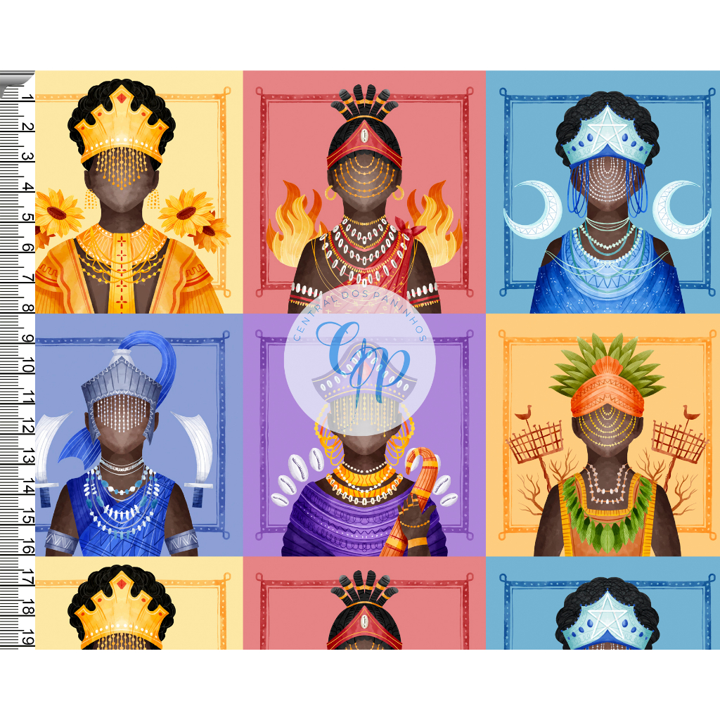 Tecido tricoline, microfibra ou gabardine - Orixás - Quadriculado - 0.50 cm