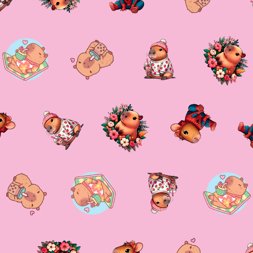 Tecido TRICOLINE MISTA Estampa Digital - capivaras