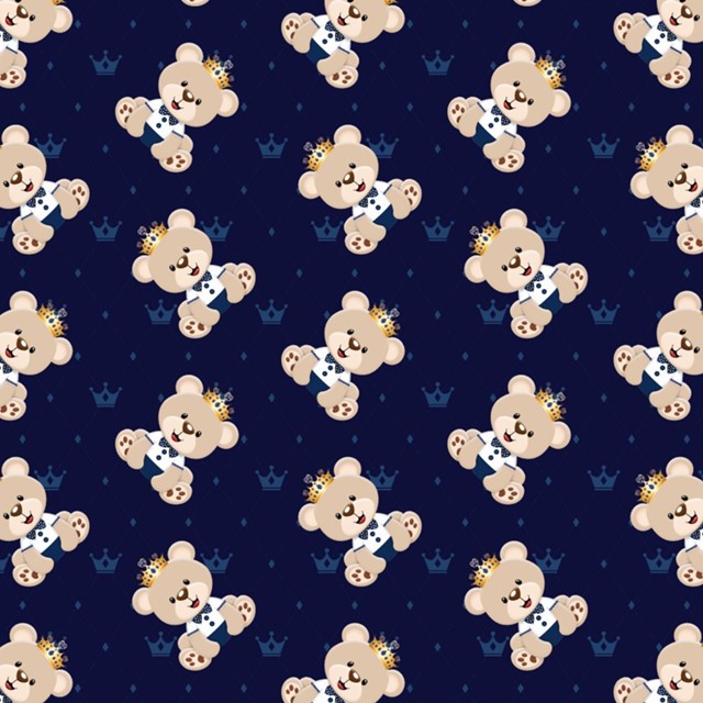 Tecido TRICOLINE MISTA Estampa Digital - Ursinho Rei Azul Mais Escuro