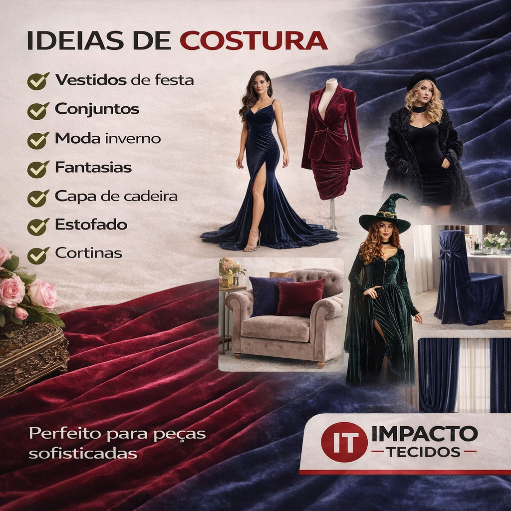 Características Gerais Composição:86%poliester 4% elastano Largura: 1,50mt O Tecido Veludo Molhado é uma malha com a face direita brilhante e com aspecto peludo e macio, seu avesso é opaco. Sendo uma das variações sintéticas do veludo, caracterizada por pelos curtos e trama densa. É versátil e pode ser facilmente utilizado tanto na confecção de vestidos de festa quanto em roupas casuais do dia-a-dia. Possui um caimento maleável dando movimento as peças. Observações: - A venda do tecido é realizada a metro sendo assim se você quiser: 1 metro x 1,50 você adiciona 1 unidade do produto 2 metros x 1,50 você adiciona: 2 unidades ao carrinho 3 metros x 1,50 você adiciona 3 unidades ao carrinho 4 metros x 1,50 você adiciona 4 unidades ao carrinho Depois é só ir ate o carrinho e Finalizar sua compra Acima de 1 un da mesma cor o tecido é enviado inteiro sem cortes