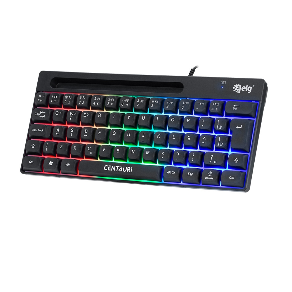 Teclado em Membrana Gamer Centauri, ELG, TGCT, 60%, ABNT, 67 Teclas, Anti-Ghosting, RGB, USB, Preto
