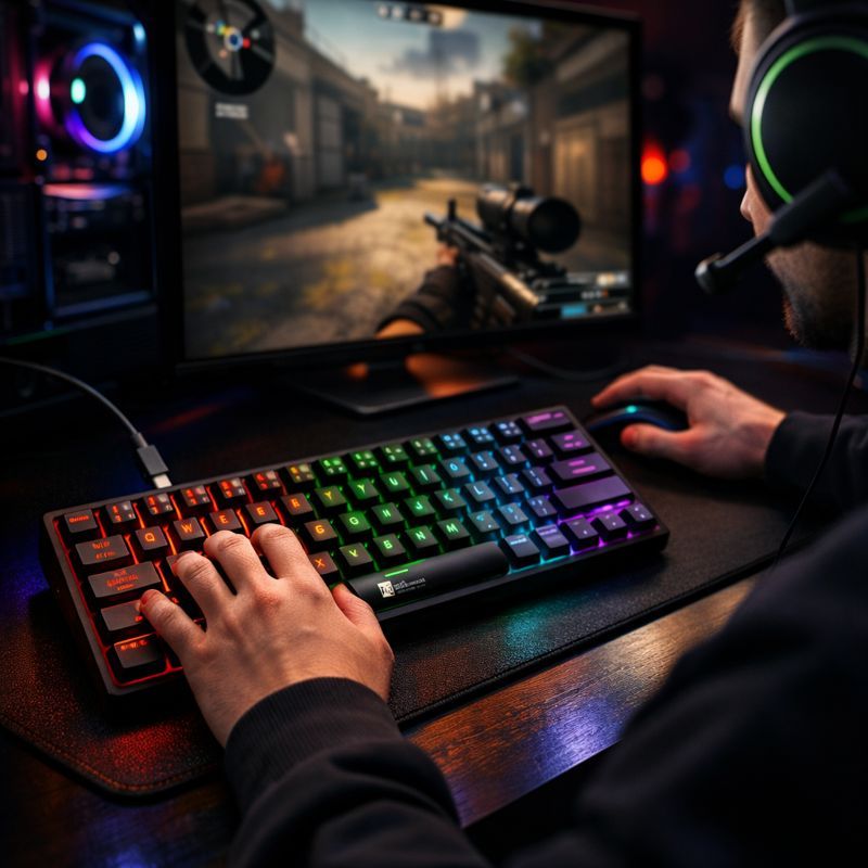 Teclado Gamer Mecânico 60% RGB ABNT2 (Ç) Profissional Compacto Iluminação Ajustável alta performace