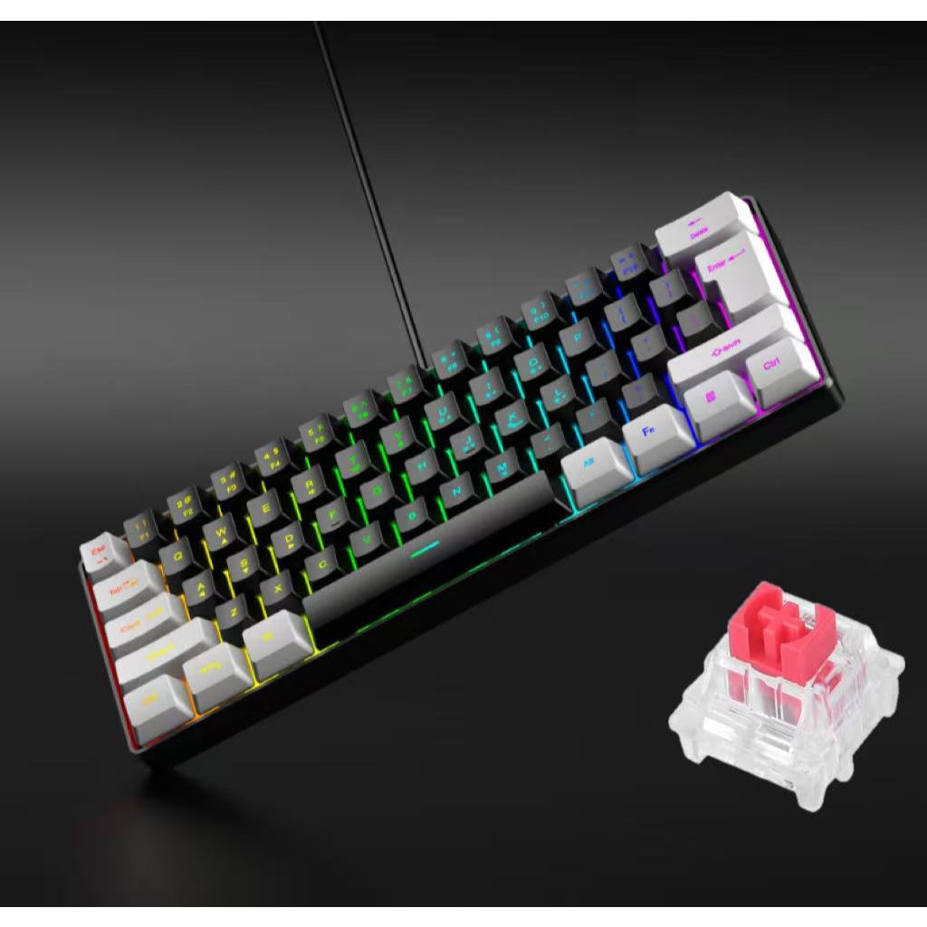 Teclado Gamer Mecânico USB Com Fio 60% ARGB Switch Vermelho 61Teclas PC e Notebook AITEK