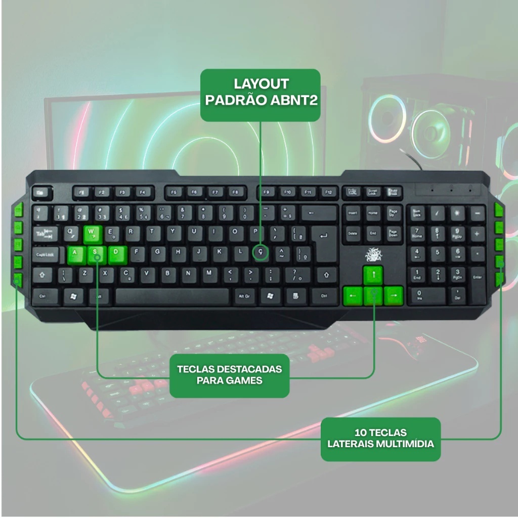 Teclado Gamer Start 2.0 ABNT Português Cabo 1,5m 5+ Gamer