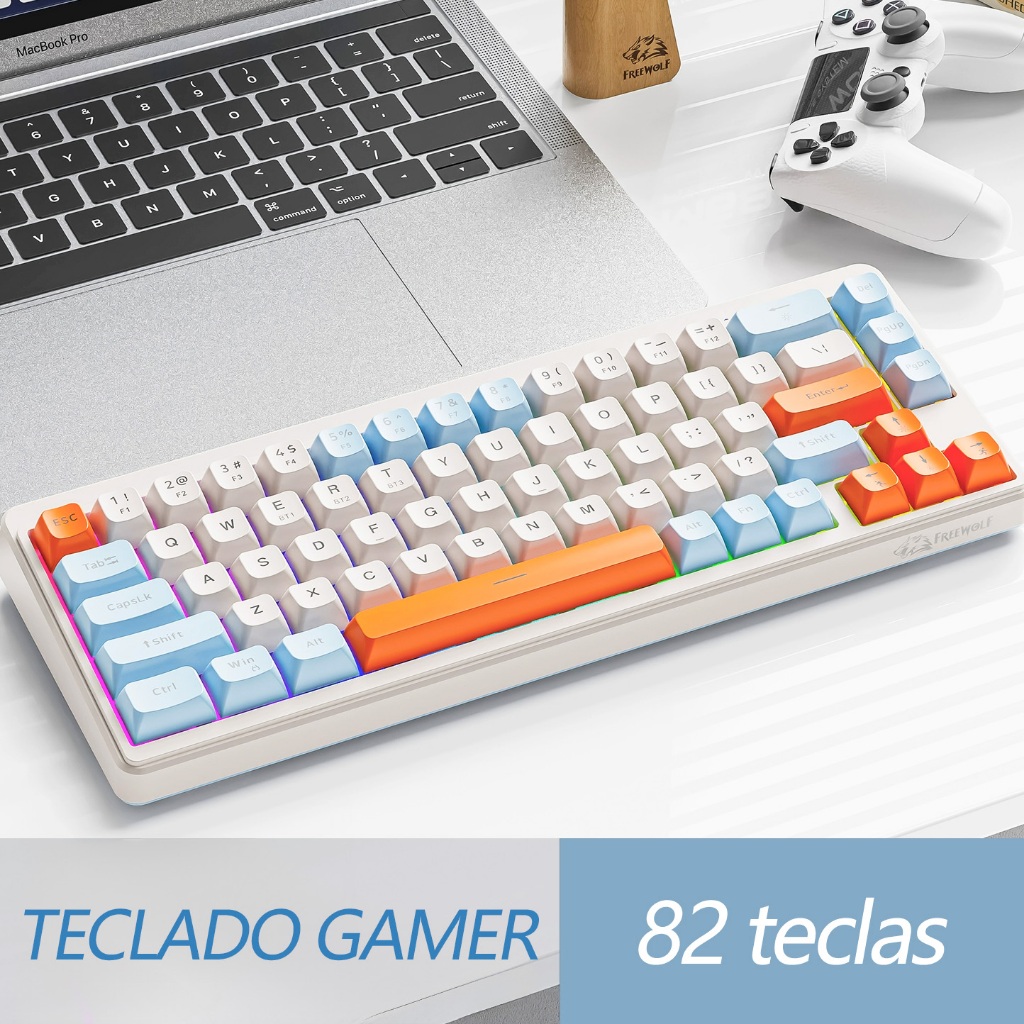 Teclado Iluminação Três Combinações de Cores RGB LED Luminoso Branco Com Fio Semi Mecânico