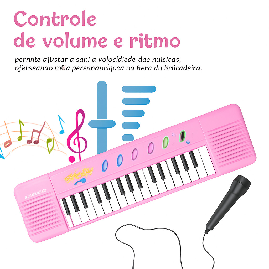 Teclado Infantil 32 Teclas Com Microfone Karaokê Brinquedo Crianças Musical Educativo Rosa Kizumba