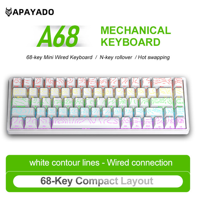 Teclado Mecânico Com Fio APAYADO A68 Retroiluminação RGB Hot-Swappable De 68 Teclas Para PC/Mac