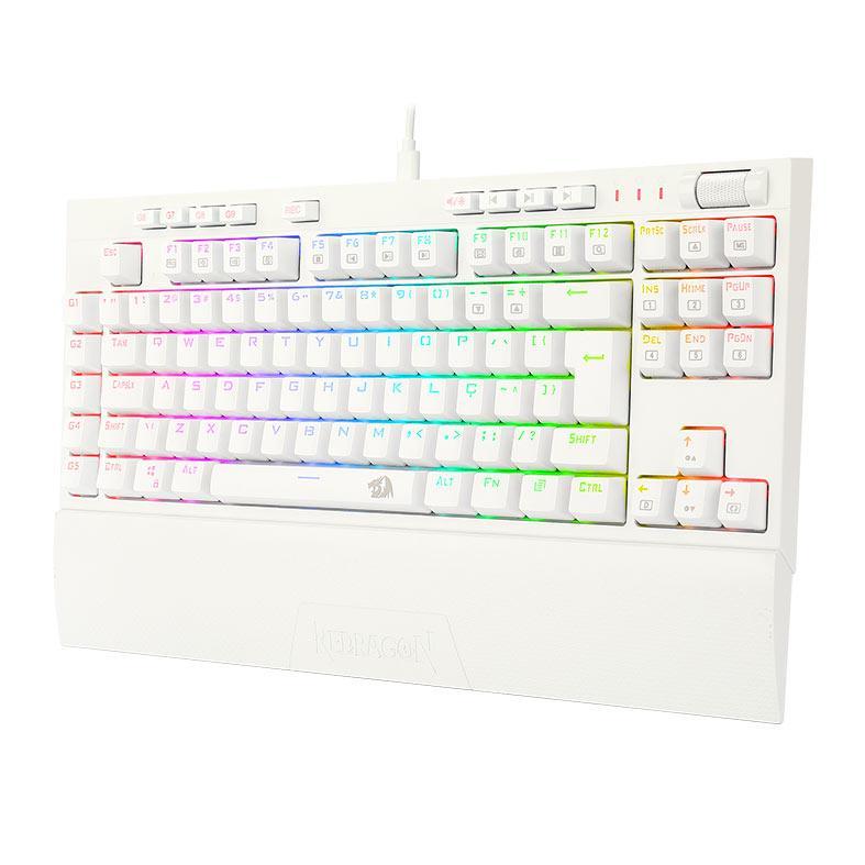 Teclado Mecanico Gamer Redragon Broadsword Pro, RGB, ABNT Switch Azul, Branco, K588W-RGB-PRO-PT-BLUE
