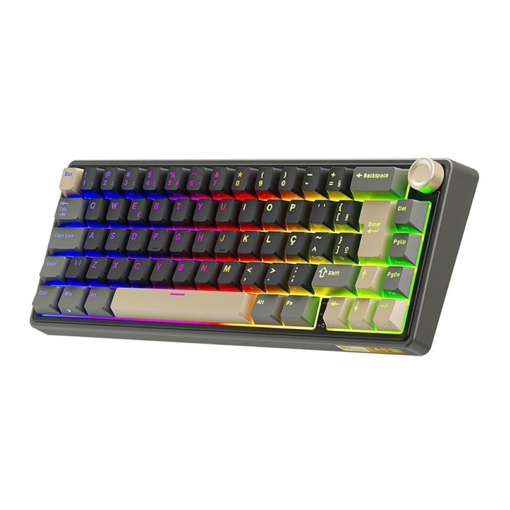 Teclado Mecanico Gamer Royal Kludge RKR65, RGB, ABNT2, Switch Brown, Preto e Dourado,RKR65-PT-BW-POR