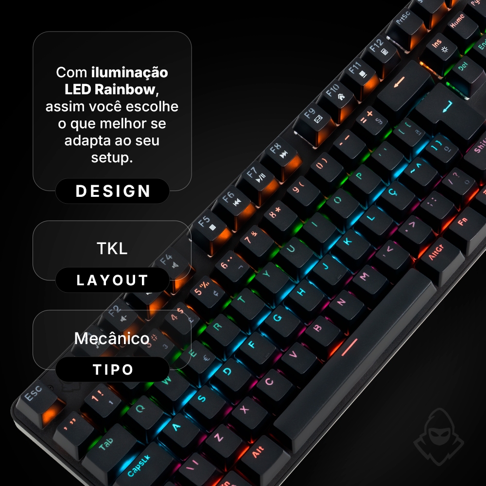 TECLADO MECANICO MANCER SHADE MK3, RAINBOW O Teclado Mecânico Mancer Shade MK3 é o equipamento indispensável para o gamer! Ele conta com formato TKL em padrão ABNT2 e com 26 teclas anti-ghosting. Foi desenvolvido com tudo que você precisa, pronto para te ajudar a conquistar suas batalhas! DESIGN Trazendo mais vida e imersão às suas jogatinas, ele tem 9 modos de iluminação LED Rainbow, para deixar o seu setup ainda mais elegante. Além da beleza, essa iluminação também colabora em ambientes mais escuros ou para as jogatinas noturnas! MATERIAL O Mancer Shade MK3 é equipado com switches Huano Vermelho, sendo uma excelente escolha para quem busca uma experiência de digitação ou jogo leve e fluida. Sendo ideal para jogos, o teclado oferece uma combinação de suavidade, rapidez e durabilidade, ideal para suas gameplays! DURABILIDADE Além de ser um teclado gamer de excelente qualidade e leve, o Mancer Shade conta com a carcaça feita de ABS, sendo resistentes e garantindo uma boa durabilidade estrutural ao teclado. Suas teclas possuem uma vida útil de 50 milhões de cliques, a opção perfeita para gamers! Marca: Mancer Modelo: MCR-SHM3-RBW01RD Características: - Teclado mecânico com retroiluminação. - Contém pés na base para ajustar altura do teclado. - Teclas maiores contém estabilizador, para maior precisão ao digitar. - Plug and Play. Quantidade de teclas: 88 Conexão: Cabo USB Material: ABS Cor: Preto Switch: Huano vermelho com hotswap, vida útil de 50 milhões de acionamentos Anti-ghosting: 26 teclas (W, A, S, D, Q, E, R, F, Z, X, C, V, Shift (esquerdo e direito), Ctrl (esquerdo e direito), Alt (esquerdo e direito), Espaço, Tab, Esc, Enter e Setas direcionais (↑, ↓, ←, →)) Modo de iluminação: Rainbow, 9 modos Layout: ABNT2 com injeção dupla Cabo: PVC 1.5m Tipo de interface: USB Requisitos do Sistema: Suporta: Windows 10, 8, 7, Vista, XP, MAX Voltagem operacional: 5V Voltagem corrente: <200mA Vida útil operacional: ≥ 50 milhões de acionamentos Temperatura operacional: 0°C ~ 45°C Dimensões: 354 x 126 x 35mm Conteúdo da caixa: - Teclado mecânico - Manual do Usuário - 3 x switches extras - 1 x removedor de switch Sobre a Pichau Informática Com mais de 17 anos de atuação no mercado nacional de tecnologia, a Pichau se destaca por seu compromisso com a inovação, qualidade e a satisfação do cliente. Referência em performance e confiabilidade, a empresa segue evoluindo para entregar produtos de excelência em diversas áreas, incluindo o esporte.