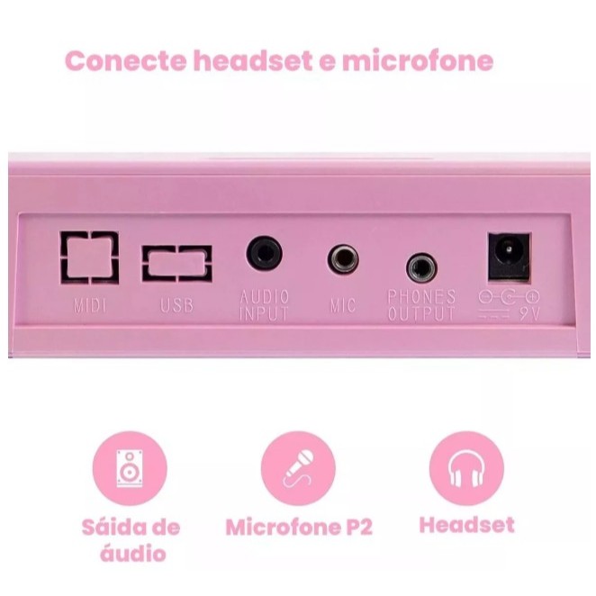 TECLADO MUSICAL Estudante ROSA Especificações: Marca: MXT Modelo: M-T1280PK Cor: Rosa • Controle de volumes: Principal, Acorde, Acompanhamento e central • Acordes um dedo, vários dedos e acorde baixo • Display de LED • Teclado estilo Piano • Alimentação externa: 9Vdc / 100-240Vac • Tamanho produto: 83,5 × 28 × 8,5 cm • Peso Produto: 2,75 kg • Notas polifonia: 8 • Tom e escala de piano • 3 modos função aprendizagem • 61 teclas • Modo gravação • Acompanha suporte de partitura • Ritmos e timbres • 50 músicas demo Acompanha: Suporte Partitura Microfone Fonte bivolt • Teclado voltado para o estudo e aperfeiçoamento musical Tem como objetivo oferecer um teclado musical colorido e intuitivo, ideal para adultos e crianças e iniciantes, que buscam uma ferramenta completa e divertida para o aprendizado e aperfeiçoamento musical, com funcionalidades que facilitam a prática e o desenvolvimento. Seu diferencial se destaca por ser, um teclado de 61 teclas em um atraente tom Rosa se destaca por seus 3 modos de função aprendizagem e as 50 músicas demo, que o tornam perfeito para o estudo guiado. Além disso, acompanha suporte de partitura, possui modo gravação e controle completo de volumes de acorde e acompanhamento, oferecendo um pacote completo e estimulante para o estudante.