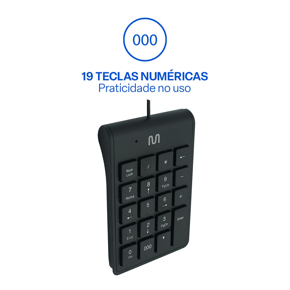 Teclado Numérico com fio USB Cabo de 120cm c/ Tecla 000 Preto Multi (Multilaser) - TC227