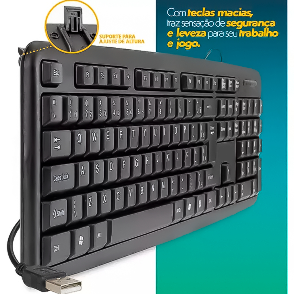 Teclado Para Computador PC Notebook Padrão ABNT2 K11 Preto Com Cabo 1,2m Teclas Macia