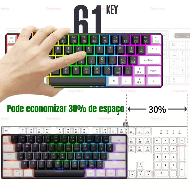 🎉Olá Bem-vindo(a) à DYNAMIC loja . Siga-nos, avisaremos o mais breve possível sobre novos produtos e promoções. ☑️Temos tudo o que você deseja aqui com uma variedade de produtos. ☑️ Temos ótimos pregos, qualidade e servico. ☑️Todos os produtos estao em pronta entrega. Enviaremos dentro de 24 horas após contar o pagamento. Sua satisfacäo é nossa prioridade e esperamos poder te oferecer um servico 5 estrelas. eTenha ótimas compras! 😙 Se tiver alguma dúvida contacte-nos, responderemos atempadamente 🔴Características do produto 【Design compacto clássico de 60%】 Este teclado gamer de 60% tem o tamanho perfeito para todos os ambientes, jogos de viagem de negócios, uso doméstico no escritório, não requer teclado numérico, é mais prático para jogadores e digitadores e oferece mais espaço para sua área de trabalho. 【Design ergonômico e toque mecânico】 A altura do teclado do mini teclado gamer é projetada de acordo com a ergonomia e não é fácil se cansar após uso prolongado. Usando tecnologia mecânica de imitação avançada, um dos recursos atraentes é a sensação mecânica. Ele também pertence a um teclado gamer de membrana relativamente silencioso. 【Efeito de luz de fundo RGB legal】 O teclado RGB de 60% inclui 6 efeitos de luz de fundo e 8 trocas de cores de luz de fundo. Diferentes configurações RGB enriquecem seu tempo de digitação. A velocidade e o nível de iluminação também podem ser ajustados de acordo com suas necessidades. Agora, as teclas são atualizadas para moldagem por injeção de duas cores e os caracteres são transparentes e luminosos. 【Personalidade Simples e Elegante】 Para alguns teclados pequenos, se você estiver cansado da monotonia, você pode escolher este estilo clássico preto e branco elegante e maduro. Além disso, o cabo destacável torna este teclado portátil para jogos simples e conveniente de conectar. 🔴Especificações: - Tipo: Teclado com fio RGB - Modelo: G61 - Tamanho: 288,5*101*34mm - Modo de luz: RGB - Voltagem: <5V±0,5V - Corrente: <100mA 🔴Inclusos: 1 * Teclado 1 * Cabo de carregamento 1 * Manual de instruções