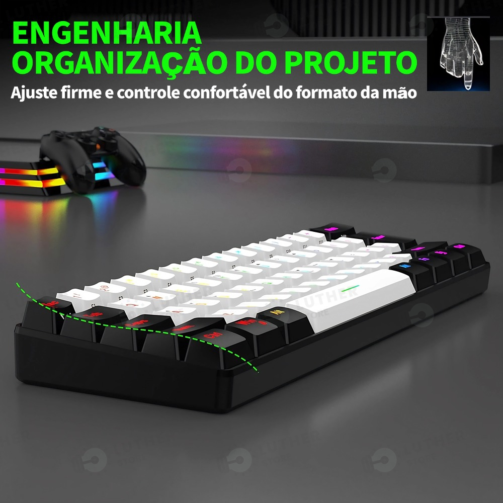 💖Olá, bem-vindo ao LUTHER STORE. Siga-nos e manteremos você informado sobre novos produtos e promoções. 💖 🎉Temos todos os tipos de produtos que você deseja aqui. 🎉Temos unhas, qualidade e serviço excelentes. 🎉Todos os produtos estão prontos para envio. Enviaremos dentro de 24 horas após receber o pagamento. Sua satisfação é nossa maior prioridade e queremos lhe oferecer um serviço cinco estrelas. Boas compras! 🤩 Se você tiver alguma dúvida, entre em contato conosco e responderemos prontamente ⌨️Tipo de produto: teclado RGB ⌨️Tamanho do teclado: 288,5*101*34mm ⌨️Número de botões: 61 ⌨️Peso do teclado: 360+-10g ⌨️Tipo de luz: RGB ⌨️Tensão operacional: ≤5v ⌨️Sem chaves de rollover: 25