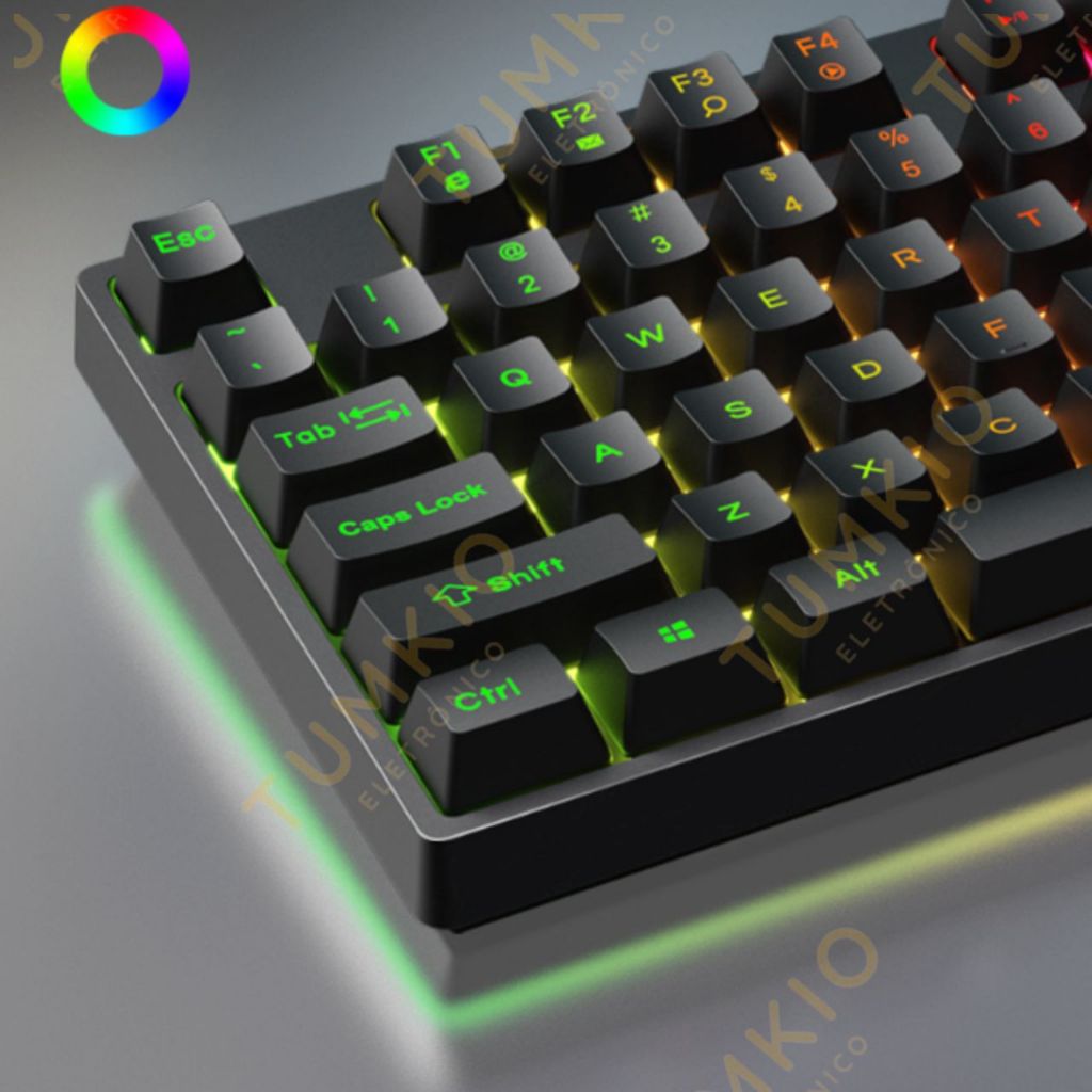 Teclado semimecânico com luzes coloridas e 87 teclas com fio
