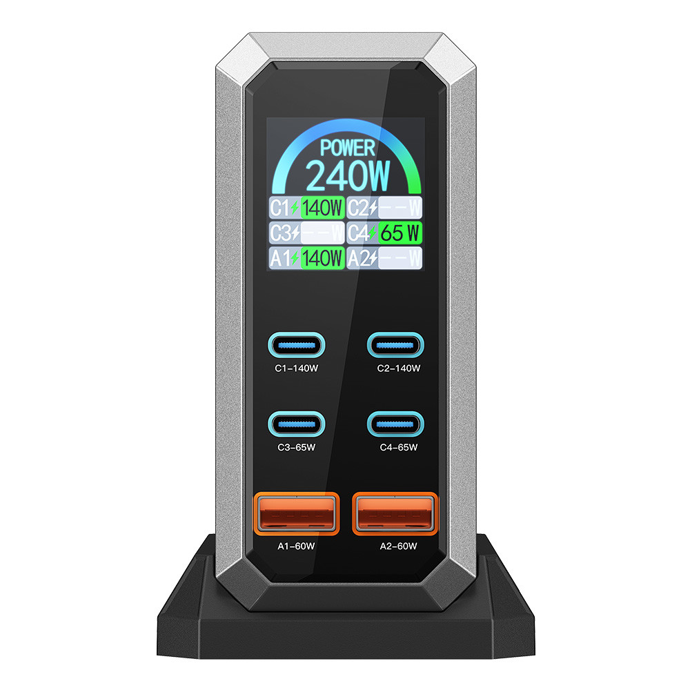 Especificações: Marca de marca Lobo Blitz Modelo modelo BW-S31 Cor da cor Preto Tamanho do tamanho 113mm*68mm*87mm Peso 335g Linha AC Comprimento da Linha AC 1M Interface de Interface 2USB-C + 2USB-C + 2USB-A Entrada de entrada (50Hz/60Hz) Saída de saída de saída Saída de saída: 240W Tipo-C1/C2 tipo: PD3.1 5V/3A, 9V/3A, 12V/3A, 15V/3A, 20V/5A, 28V/5A PPS: 3,3-21V/5A 140W (Máx.) C1+C2: 100W+65W Tipo-C3/C4: 5V/3A, 9V/3A, 12V/3A, 15V/3A, 20V/3.25A PPS 3.3-21V/3A 65W (Máx.) PPS 3.3-21V/3A 65W (Máx.) C3+C4: 65W+65W USB-A1/A2: QC3.0 5V/3A, 9V/3A, 12V/3A, 20V/3A, 20V/3A 60W (Máx.) A1+A2: 15W+15W Protocolos de protocolos PPS/PD3.1/PD3.0/PD2.0/QC4.0+/QC3.0/QC2.0/AFC/FCP/SCP Tipo de tipo Plugue UE O pacote inclui: Carregador de mesa de exibição Digital BlitzWolf BW-S31 240W 6 em 1 GaN 1 x Cabo AC