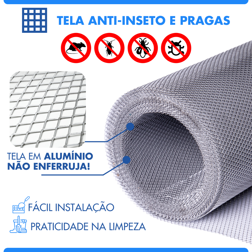 Apresentamos a Tela Anti Insetos de Alumínio Expandido, o produto perfeito para manter sua casa livre de invasores indesejados. Versátil e durável, essa tela é ideal para calhas, ralos, parabólicas e muito mais. Disponível em qualquer medida, você pode personalizá-la de acordo com suas necessidades específicas. Feita com alumínio expandido de alta qualidade, essa tela oferece uma barreira resistente e eficaz contra insetos, sem bloquear o fluxo de ar ou prejudicar o desempenho dos sistemas. Sua malha fina impede a passagem de mosquitos, moscas, aranhas e outros pequenos intrusos, garantindo um ambiente protegido e livre de picadas irritantes e doenças transmitidas por esses insetos. Além disso, nossa Tela Anti Insetos de Alumínio Expandido foi projetada para resistir a condições adversas. Pode ser exposta à chuva, maresia e outras intempéries sem perder sua eficácia. E o melhor de tudo, é facilmente lavável, permitindo que você a mantenha limpa e em perfeito estado sem preocupações. Medidas e especificações: Largura: 100cm, 150cm, 200cm, 300cm, 400cm ou 500cm Comprimento: 50cm e 100cm Material: Alumínio Perguntas Frequentes (FAQ) Qual é a medida ideal para minha necessidade? R: A Tela Anti Insetos de Alumínio Expandido pode ser adquirida em qualquer medida. Recomendamos que você tire as medidas exatas do local onde deseja instalá-la e entre em contato conosco para encomendar a tela sob medida. Como instalar a Tela Anti Insetos? R: A instalação é simples e pode variar de acordo com o local de aplicação. A tela pode ser fixada utilizando adesivos especiais, presilhas, ou até mesmo molduras personalizadas. A Tela Anti Insetos bloqueia a passagem de ar? R: Não. A tela possui uma malha fina que impede a passagem de insetos, mas permite a circulação adequada de ar, garantindo a ventilação dos ambientes. Como faço a limpeza da tela? R: A Tela Anti Insetos de Alumínio Expandido pode ser facilmente lavada com água e sabão neutro. Não há necessidade de preocupação com danos ou corrosão. Posso cortar a tela para ajustá-la ao tamanho desejado? R: Sim. A Tela Anti Insetos de Alumínio Expandido pode ser facilmente cortada com uma tesoura comum. Isso permite que você faça ajustes precisos e personalize a tela de acordo com suas necessidades. A tela de alumínio expandido está suscetível à oxidação e ferrugem? R: Não. O alumínio expandido utilizado na Tela Anti Insetos é resistente à oxidação e ferrugem. Isso garante a durabilidade do produto mesmo quando exposto a condições climáticas adversas, como chuva e maresia. Proteja sua casa dos visitantes indesejados e desfrute de um ambiente mais limpo e livre de insetos. Adquira agora mesmo a Tela Anti Insetos de Alumínio Expandido e experimente a tranquilidade de viver sem preocupações. Garanta sua medida ideal hoje mesmo e tenha a proteção que você precisa! Clique agora em "Comprar Agora"!