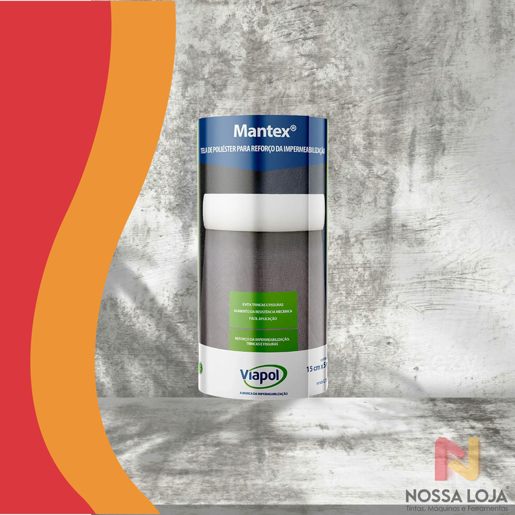 Mantex é uma tela de 100% poliéster levemente impregnada com PVC ou crua. Especialmente desenvolvida como estruturante ou reforço de impermeabilizações moldadas no local, com o principal objetivo de aumentar a resistência e evitar o surgimento de fissuras e/ou trincas distribuindo de maneira uniforme as tensões. Vantagens - Compatível com os principais impermeabilizantes flexíveis do mercado; - Resistencia aos álcalis proporcionada pelo revestimento em PVC; - Leve e flexível, facilitando o manuseio e aplicação; - Aumento da estabilidade mecânica do sistema de impermeabilização; - Resistente as intempéries; - Baixa deformação. Marca: Viapol Ambiente indicado: Internos e Externos Superfícies indicadas: Pode ser utilizado como reforço na impermeabilização flexível de cimentícios, membranas líquidas, asfaltos, em áreas de maior esforço como ralos, juntas, cantos, arestas ou reforço geral na impermeabilização de lajes. Além de também ser utilizada em tratamento de trincas e fissuras. Modelo: Mantex Tipo: Poliéster Volume da embalagem: 15cm x 5m Prazo de Validade (embalagem fechada e sem uso): 36 (trinta e seis) meses a partir da data de fabricação nas embalagens originais e intactas, em local coberto e seco, ventilado e longe de fontes de calor. Impermeabilizante 01 Tela de Poliéster Mantex 15cm X 5m Viapol