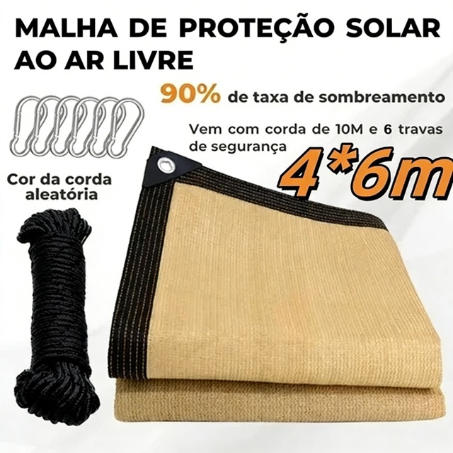 | Tela de Sombreamento 90% 4x6m com 6 Ganchos e Cordão | Proteção par... este produto | R$ 139,00 | 26% | 4.6/5 | — |