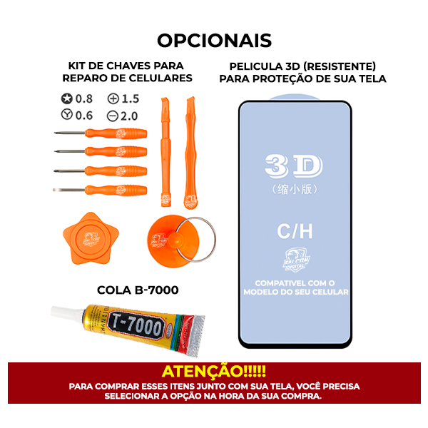 Acompanha uma nova tela (display/frontal) do seu celular, ideal para substituir aquela que trincou, quebrou ou parou de funcionar direito. Esse produto faz o celular voltar a funcionar normalmente, com imagem e toque (touch) funcionando como antes. Modelos Compatíveis: LG K41S *Acompanha uma Película 3D Grátis.* Atendimento via chat disponível 24 horas por dia, com atendentes preparados para esclarecer todas as suas dúvidas antes da compra. — Produto novo, com qualidade original e compatível com o modelo informado no anúncio. — Envio imediato após a confirmação da compra. — Garantia válida exclusivamente para defeitos de fabricação. — É fundamental realizar os testes de todas as funções (imagem, toque, brilho, etc.) antes da instalação definitiva no aparelho. — Não realizamos trocas de produtos com danos físicos, como quebras, trincas, arranhões ou batidas, assim como itens sem o selo ou carimbo do fornecedor. — Certifique-se de estar adquirindo a peça correta para o modelo exato do seu aparelho, a fim de evitar problemas posteriores. — Em caso de qualquer problema com o produto, entre em contato com nossa equipe via chat. Nossos atendentes estão prontos para auxiliar e buscar a melhor solução, sem a necessidade de abrir reclamações em plataformas de venda. A instalação deste produto deve ser realizada por um profissional qualificado e certificado ou alguém com vasta experiência na substituição de telas de celulares. Para trocas ou devoluções, o produto deve ser enviado em perfeitas condições, sem qualquer tipo de avaria como riscos, rachaduras, furos, marcas de cola, amassados, entre outros danos, e dentro do prazo informado acima. Recomendamos aplicar película de proteção na tela após a instalação, para maior durabilidade e segurança.