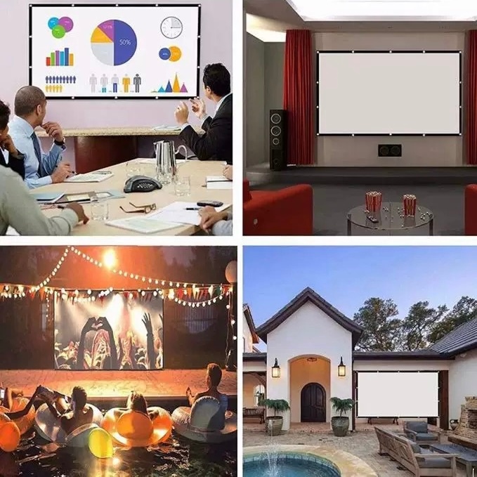 Bem-vindo à loja minimeow🐈🐈⬛ Leve, livre de rugas, portátil, tela de projetor, formato de 16:9, material de poliéster, cortina de tecido, frontal e traseira Tela Portátil: Esta tela de projeção é portátil, perfeita para uso em casa ou ao ar livre, oferecendo flexibilidade e conveniência. -Resolução 16 :9 -Material Sem Arrugas: Feito de material sem arrugas, esta tela de projeção garante uma superfície lisa e uniforme, garantindo uma projeção clara e sem manchas. -Leve e Fácil de Transportar: Devido ao seu design leve e compacto, esta tela de projeção é fácil de transportar, tornando-a ideal para viagens ou eventos ao ar livre. -Uso Versátil: Esta tela de projeção é versátil e pode ser usada como uma cortina de projeção FRONTAL ou TRASEIRA, adequada para uma variedade de cenários de projeção. -Não há necessidade de furar a parede. Acompanha 6 presilhas com adesivos dupla face, para uma melhor e perfeita aderência na parede. 1. Cortina simples, fácil de usar e fácil de transportar 2. Ângulo de visão da tela Anti-luz, ângulo de visão da tela Anti-luz, 30° Efeito de visualização de visualização 3. A tela pode ser projetada em ambos os lados. A frente é uma tela de projeção à prova de luz, que pode melhorar efetivamente o efeito de visualização. A parte de trás é uma tela de projeção comum. O efeito é semelhante a uma parede branca. Projetor, o evangelho de projetores de baixo lúmen (preste atenção ao modo como você usa) 4. Armazenamento dobrável, vinco não afeta a visualização