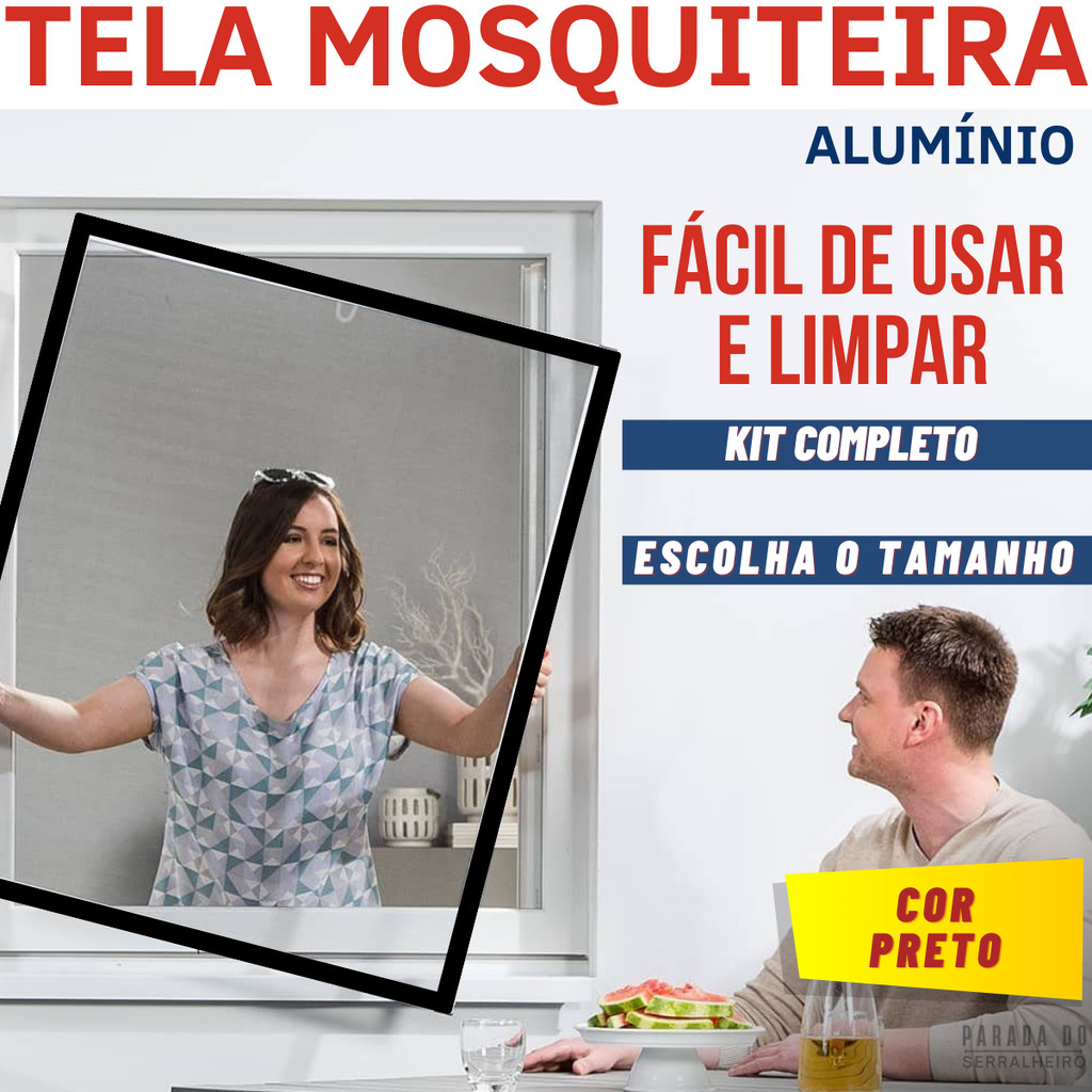 Tela Mosquiteira com Moldura de Alumínio PRETO – Kit Completo Fácil Instalação Contra Insetos