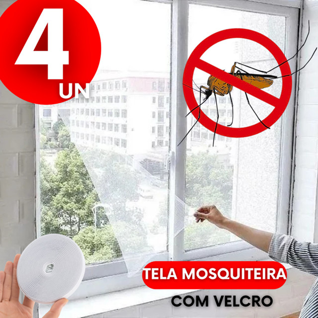 Tela Mosquiteiro Para Janela 180x150cm Tela de Proteção Com Velcro Anti Mosquito e Insetos Kit 04