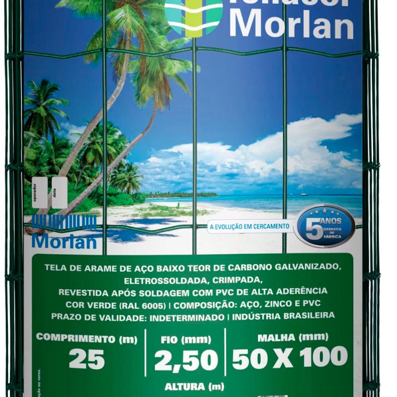 Tela Multiuso PVC Revestida Tellacor 1,00M x 25M Verde 3721 MORLAN A Tela Tellacor Verde é produzida com arame de aço baixo teor de carbono, galvanizado, crimpado, eletrossoldado e revestido com PVC de alta aderência após a soldagem, além de ser resistente e alta durabilidade, oferece máxima proteção contra a corrosão, especialmente em áreas litorâneas. Possui a vantagem do revestimento em PVC de alta aderência, oferece também a vantagem da crimpagem, que permite o perfeito tensionamento e acabamento da instalação. DADOS TÉCNICOS: Malha: 50 x 100 mm. Fio: 2,50mm. Comprimento: 25m. Altura: 1m. Ref: 3721 Marca: Morlan Garantia: 3 meses *Imagens meramente ilustrativas.