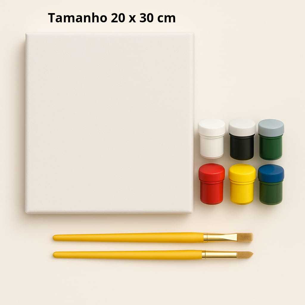 Tela para Pintura + Kit com 6 Tintas Guache e 2 Pincéis