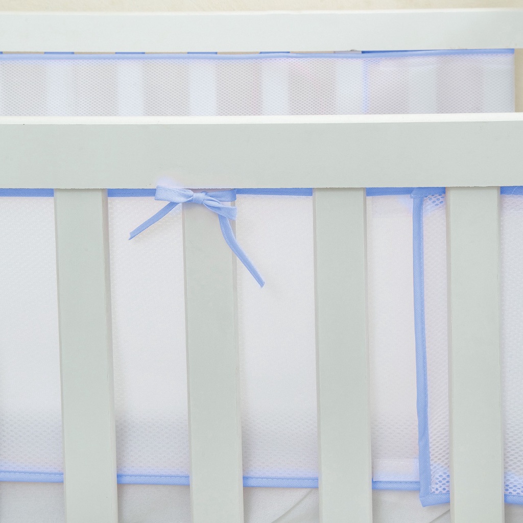 A Tela Protetora Respirável é confeccionada em um material vazado, caso o bebe role e encoste nas laterais ela impede que o bebê enrosque os bracinhos ou pernas entre as grades do berço. ***Tela de Mini Berço*** 2 Telas Laterais 1,28 m (comprimento) x 0,24 cm (altura) - medidas aproximadas ***Tela de Berço Americano*** 2 Telas Laterais 1,54 M (comprimento) X 0,25 CM (altura) - medidas aproximadas COMPOSIÇÃO Tecido da borda: 100% Algodão; Tela: 100% Poliéster. A tela possui velcro nas pontas para a fixação do mesmo. PRODUTO A PRONTA ENTREGA , ENVIO IMEDIATO
